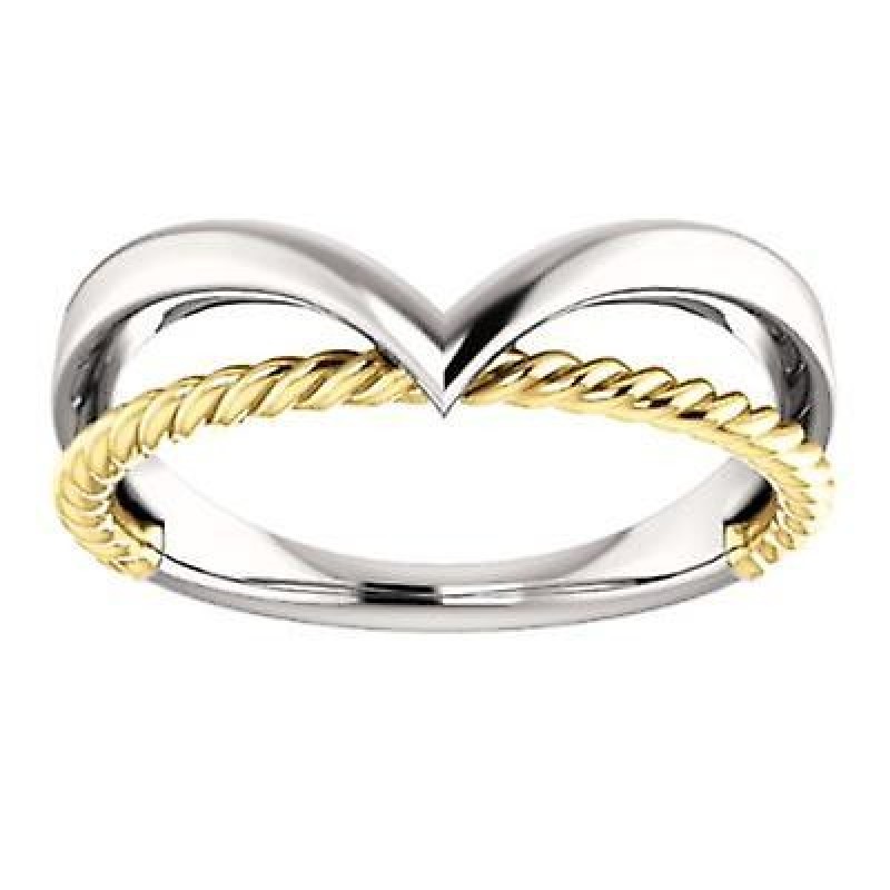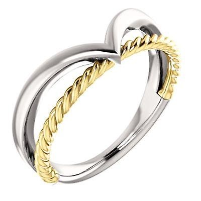 Negativer Space Rope Ring aus 14 Karat Weißgold und poliertem Gelbgold, Größe 6,5, Geschenk