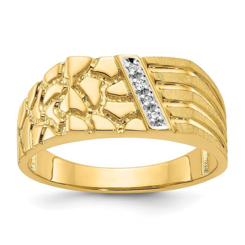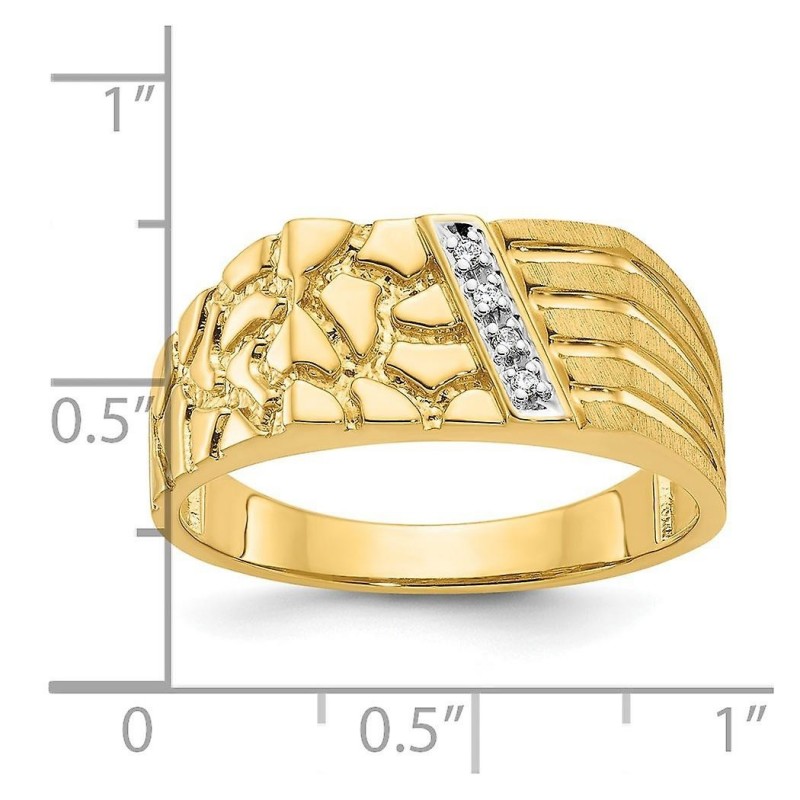 10 Karat polierter Diamantnugget-Herrenring – Größe 10,00 – 4,6 Gramm, Diamantgewicht 0,03 Karat in 10 Karat Gelbgold – – Geschenkfertige Schmuckschatulle enthalten – Finish: Poliert – ::: ::: [Pflege und Handhabung: Diamant] – Mit warmem Seifenwasser und einer weichen Bürste oder einem Tuch reinigen. :::