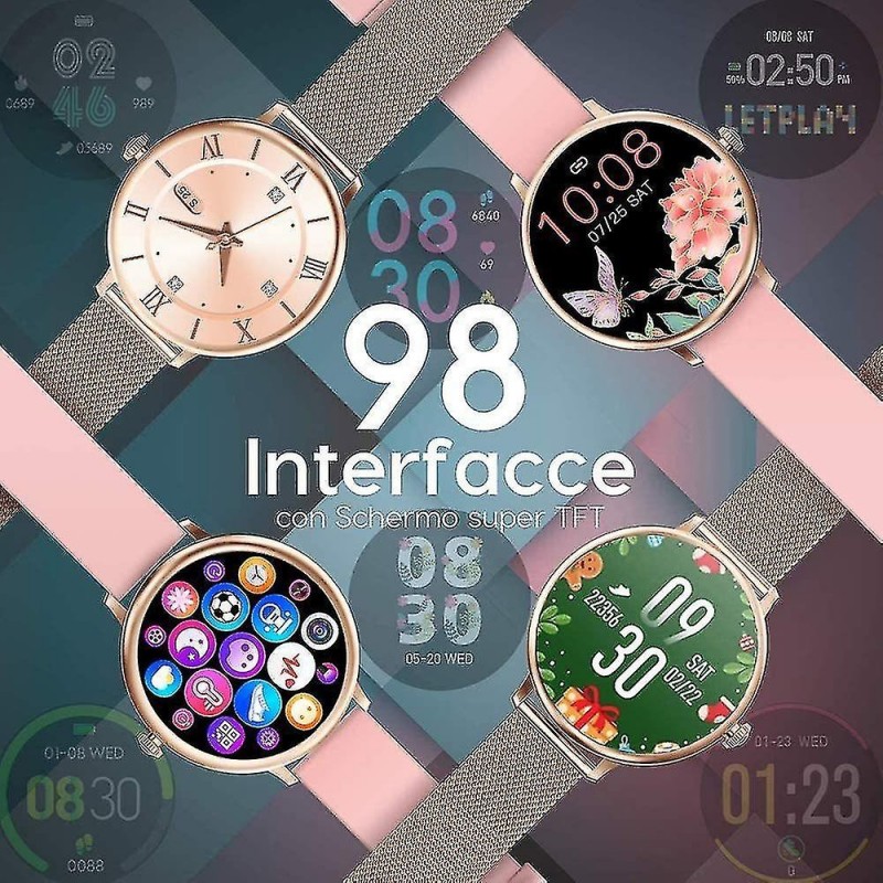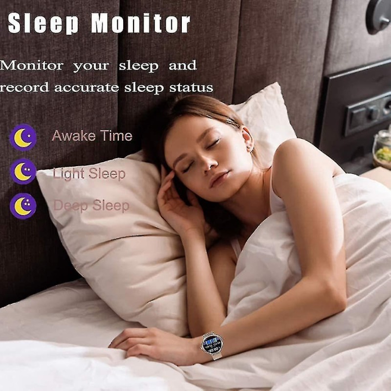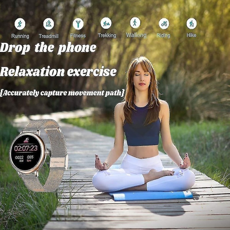 Wasserdichte Smartwatch mit vollem Touchscreen. Das stilvolle Erscheinungsbild dieser Smartwatch mit vollem Touchscreen ist das beste Geschenk für Frauen. Sie misst Herzfrequenz, Blutdruck, Schlafüberwachung, den weiblichen physiologischen Zyklus, Schrittzähler, Sportkilometer, Kalorienverbrauch, Distanzfotografie, Bewegungserinnerungen, viele Sportmodi usw. Wasserdicht, schweißfest und regenfest im Alltag. 8 Sportmodi und IP67-Wasserbeständigkeit. Verfolgen Sie ganztägige Aktivitäten, einschließlich Schritte, Distanz und verbrannte Kalorien. 8 Sportmodi überwachen Ihre Bewegungsdaten, um Ihr Training individuell anzupassen. Laufen, Radfahren, Fußballspielen usw. Sie können Ihre Schwimmzüge im Pool überwachen und unter der kalten Dusche nutzen. Benachrichtigungen und SMS: Empfangen Sie Anrufe, SMS- und SNS-Nachrichten, Facebook, WhatsApp, Twitter, Instagram usw. Wenn Sie eine Benachrichtigung erhalten, vibriert Ihre Uhr, um Sie daran zu erinnern. Verbinden Sie das Armband einfach über die App mit Ihrem Telefon und richten Sie es in der App ein. Keine verpassten Anrufe oder Nachrichten. Herzfrequenzmesser und Schlafüberwachung Mit integrierten intelligenten optischen Sensoren überwacht der Aktivitätstracker Ihre Herzfrequenz in Echtzeit und erkennt sie automatisch. Darüber hinaus überwacht es effektiv Ihre Schlafqualität und bietet eine umfassende Schlafqualitätsanalyse, die Ihnen dabei hilft, einen gesünderen Lebensstil zu entwickeln. Kompatibilität und weitere Funktionen Diese Uhr ist mit Smartphones mit iOS 9.0 / Android 4.4 oder höher und Bluetooth 4.0 oder höher kompatibel. Diese Uhr verfügt außerdem über einen Alarm, eine Stoppuhr, eine Fernsteuerung der Kamera, eine Wettervorhersage und eine Helligkeitseinstellung. (Nicht kompatibel mit iPad)