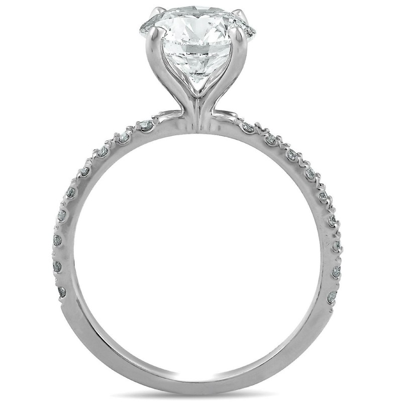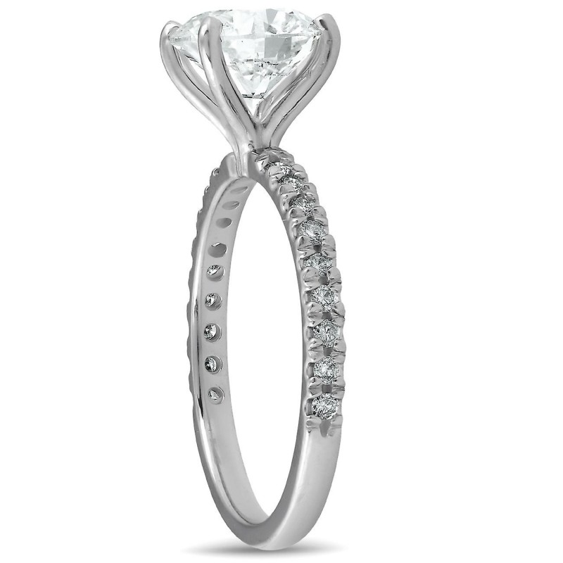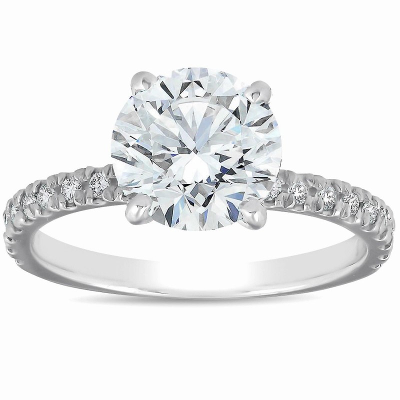2 1/3 ct weißer französischer Pavé-Diamant-Solitär-Verlobungsring in 14 Karat Weißgold